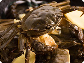 每逢炎夏,青母蟹會在產(chǎn)卵時棲身于淺灘河畔,在陽光的照射下,體內(nèi)的蟹膏分解成金黃色的油脂,然后滲透到體內(nèi)的各個部分,使得整只蟹晶瑩剔透、充滿黃油,因此被稱為黃油蟹。
